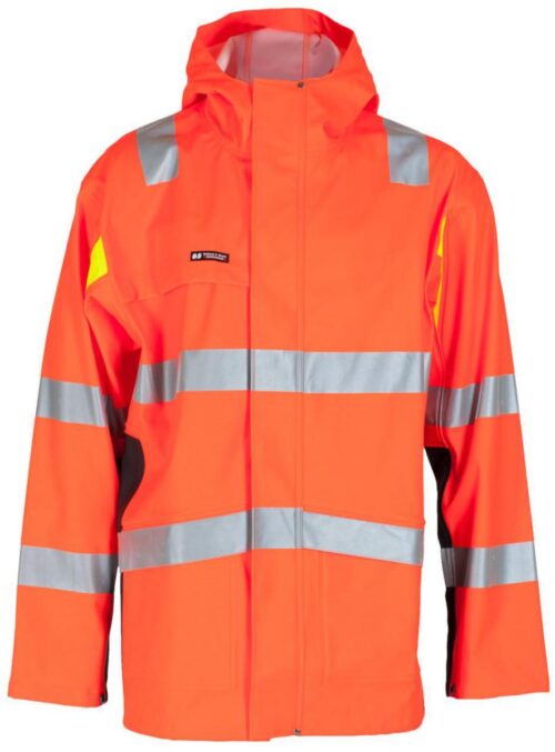 BERGSET REGNJAKKE PU/PVC EN 471,KL.3, ORA./SV/GUL. ANTIFLAME STR.L