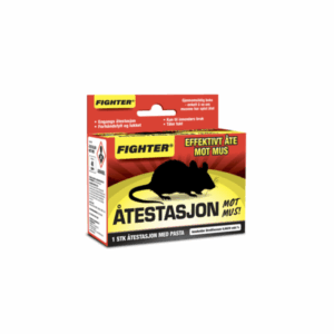 Ferdigfylt engangs åtestasjon med 40 gram gift-pasta. Åtestasjonen er i klar plast slik at man enkelt kan følge med på om mus har spist av åtet. Giften i åtet er svært effektiv, og er mye brukt av profesjonelle skadedyrbekjempere.